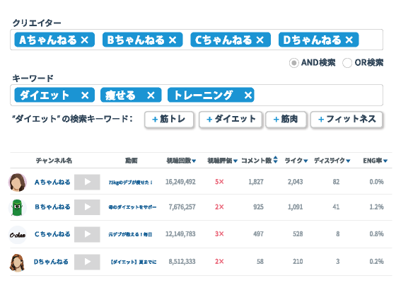 国内のYouTubeチャンネルを網羅したデータで企業やクリエイターの活動をサポートする、国内最大級のYouTubeデータ分析ツールです。