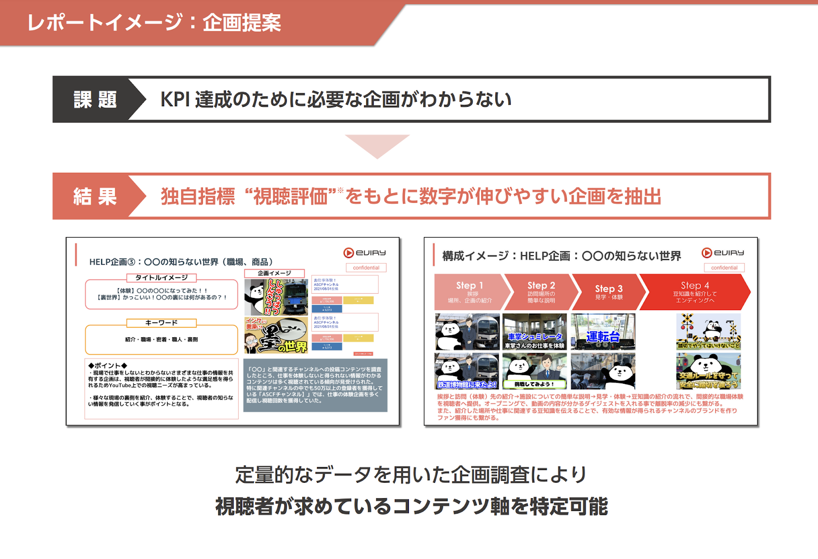 このような定量的なデータを用いた企画調査により、視聴者が求めているコンテンツ軸が特定できます。