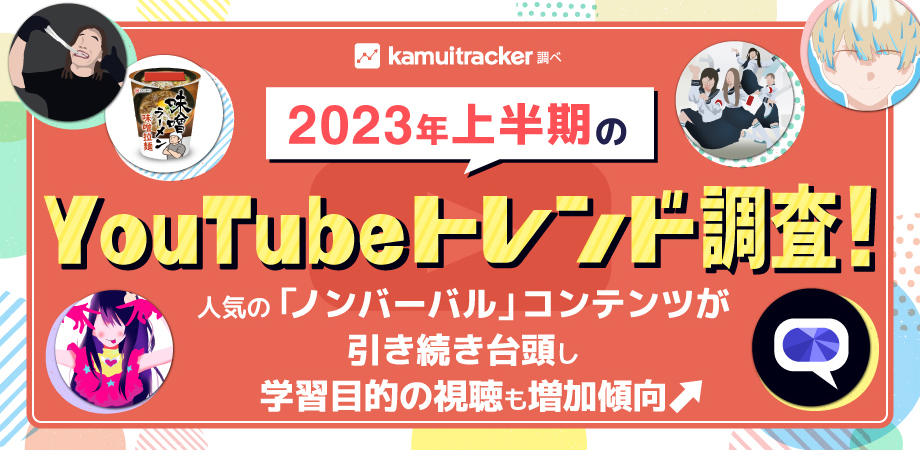 『kamui tracker』の「チャンネル検索機能」を用い、2023年1月1日以降開設された国内の約1,500チャンネルを対象に調査を実施しました。そのチャンネルの中から、総視聴回数及び登録者数ランキング(登録者数上位50チャンネル・視聴回数上位100チャンネル)を抽出し、その結果を考慮した上で、総合的な観点から2023年上半期のトレンドYouTuberを解説します。