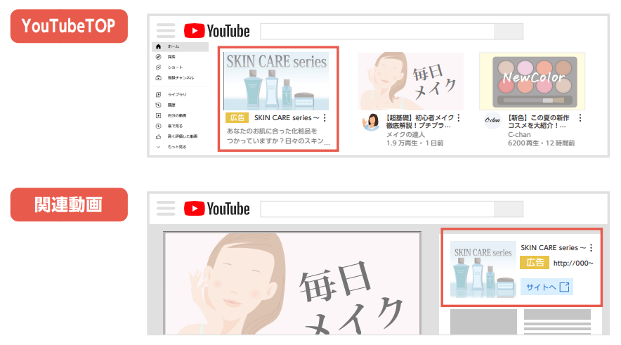 本広告はYouTube以外にもリーチを拡大できるところがメリットですが、YouTubeのプラットフォーム上に出てくる広告ではないため、YouTube広告という分類からは外れます。