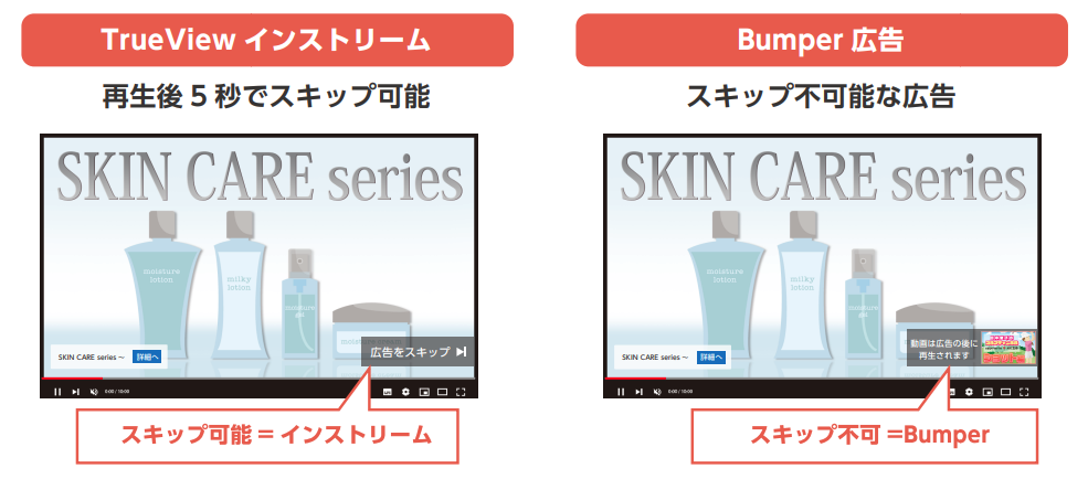 さらに、広告の途中でスキップが可能か不可能かでも種類が分けられます。課金形態も変わるので、これらを組み合わせるとYouTube広告の主要な種類は4種類に分けられています。