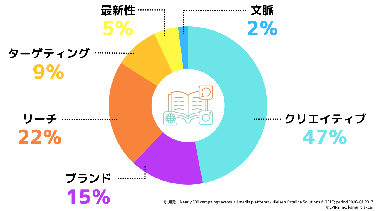 下記を見てもわかるように、広告の各要素の中で売上に貢献する要素として「クリエイティブ」が47%と最も割合が高いです。
