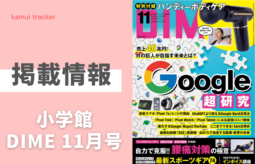 小学館が出版する雑誌「DIME 11月号」の「Google超研究」特集において、弊社が『kamui tracker』を活用して調査したショート動画に関するデータが記事に掲載されました。