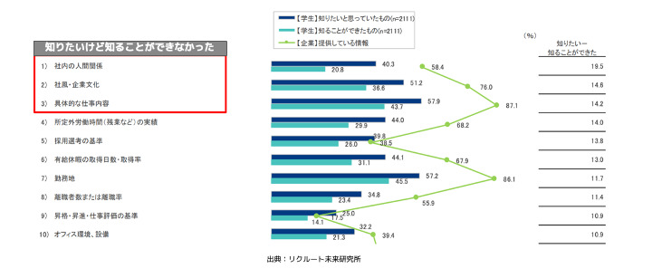 その背景として企業が情報を提供しているのにも関わらず、学生らが知りたいのに知れなかった情報のギャップにより、エントリーを避けていることが挙げられます。