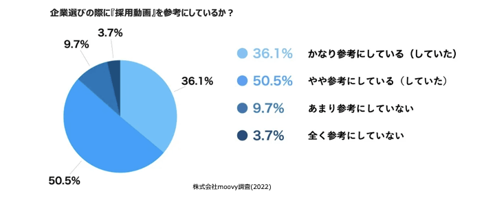 そして、2022年に行われた株式会社moovyの調査では、学生の85%以上が採用動画を参考にしていることが分かっています。