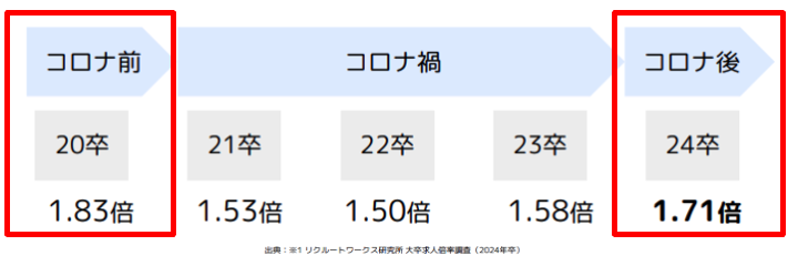 2024年は求人倍率がコロナ禍以前に戻りつつあり、求職者側の選択肢が増え、採用の難易度が上昇しています。企業としてはエントリー数をなるべく多く確保したいところではないでしょうか。