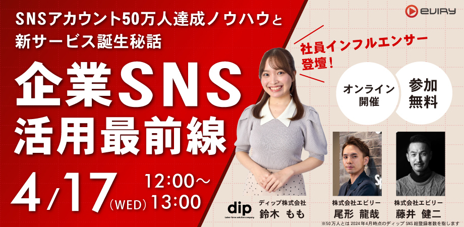 今回は、企業SNSで輝かしい成果をあげ大活躍の、ディップ社員インフルエンサー「もも」さんをゲストにお招きし、失敗談から成功までの経験談を特別に解説します。