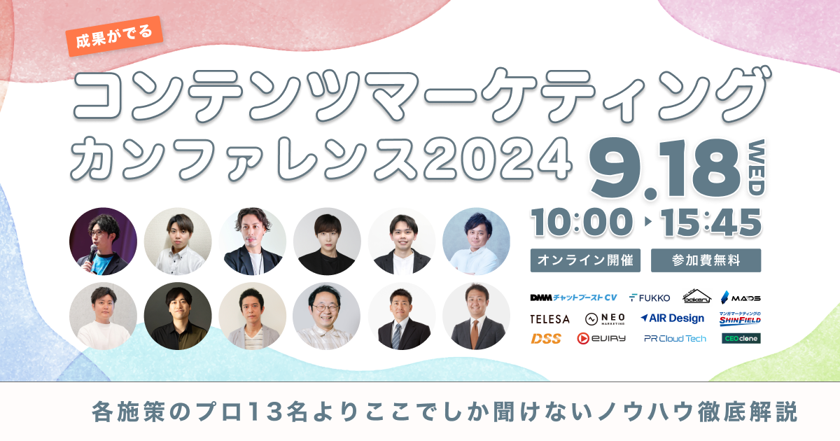 【募集終了】成果がでるコンテンツマーケティングカンファレンス2024 〜各施策のプロ13名よりここでしか聞けないノウハウ徹底解説〜