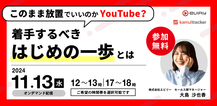 「YouTubeを何とかしなくてはと思っているけど、何から着手していいかわからない」「少なくとも今公開している動画だけでもなんとか整えたい」等、気軽にYouTube運用にチャレンジしてみたいご担当者さまは是非ご視聴ください。