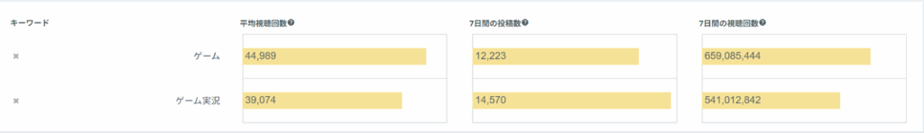 これはリアルタイムの検索関心を反映しており、今まさに視聴者が求めているテーマを把握するのに有効です。 - ツールを利用し競合度や視聴市場を調査する