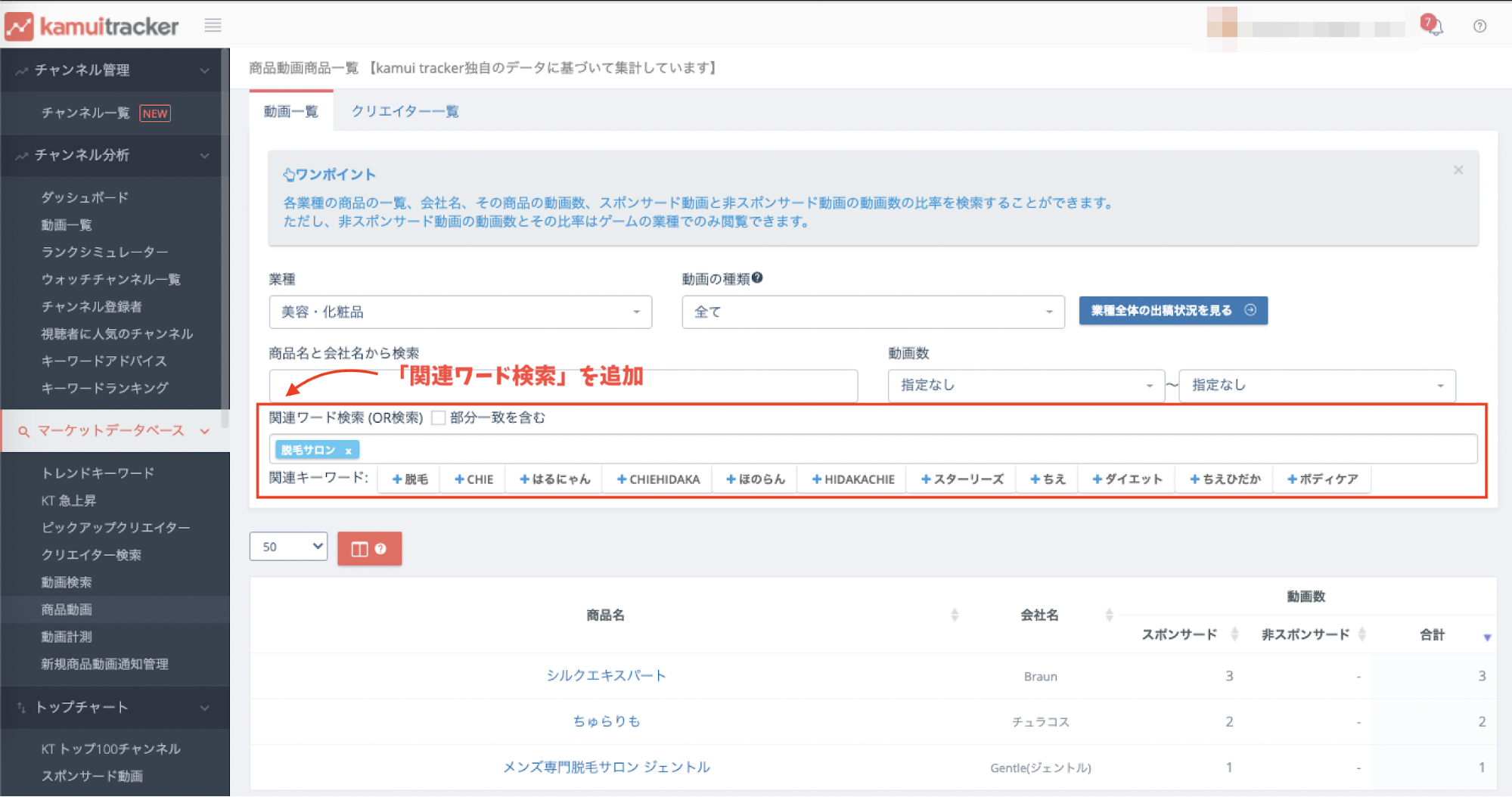 kamui trackerには、企業とYouTuberのタイアップ動画を探せる機能があり、タイアップを検討する企業様にご活用いただいておりました。