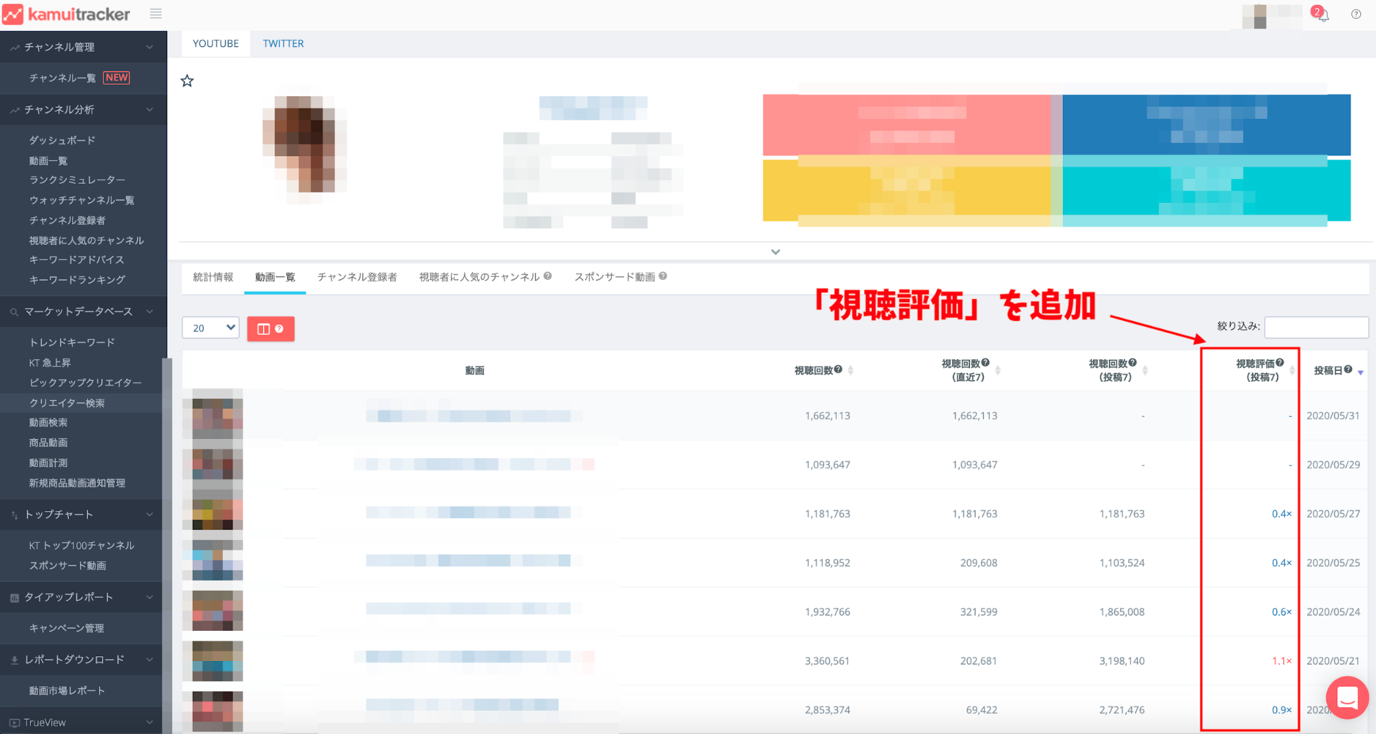 【kamui tracker】YouTuberの平均視聴を上回っている動画がひと目で分かる機能をリリース!