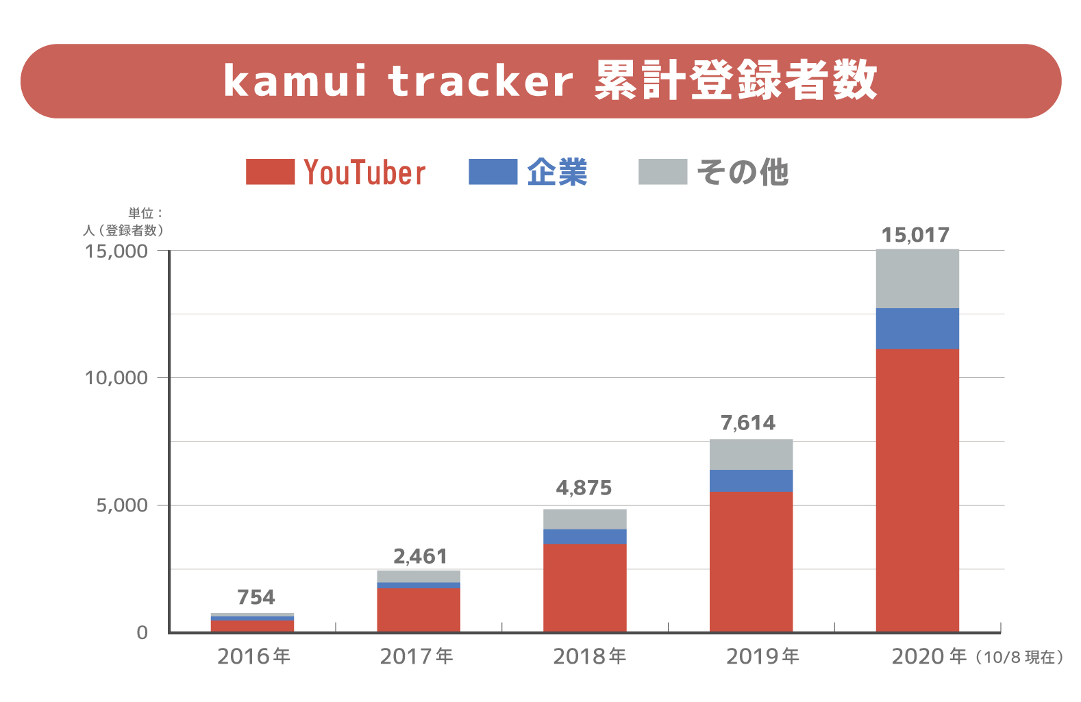 冒頭のグラフは、サービス開始した2016年から2020年10月8日までの累計登録者数の推移を示しています。