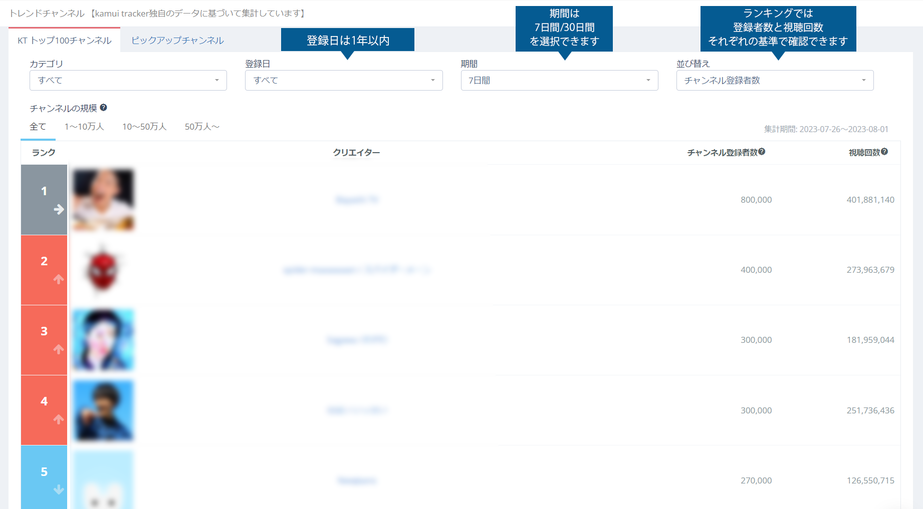 - チャンネル開設1年以内の伸びているクリエイターを知りたい方